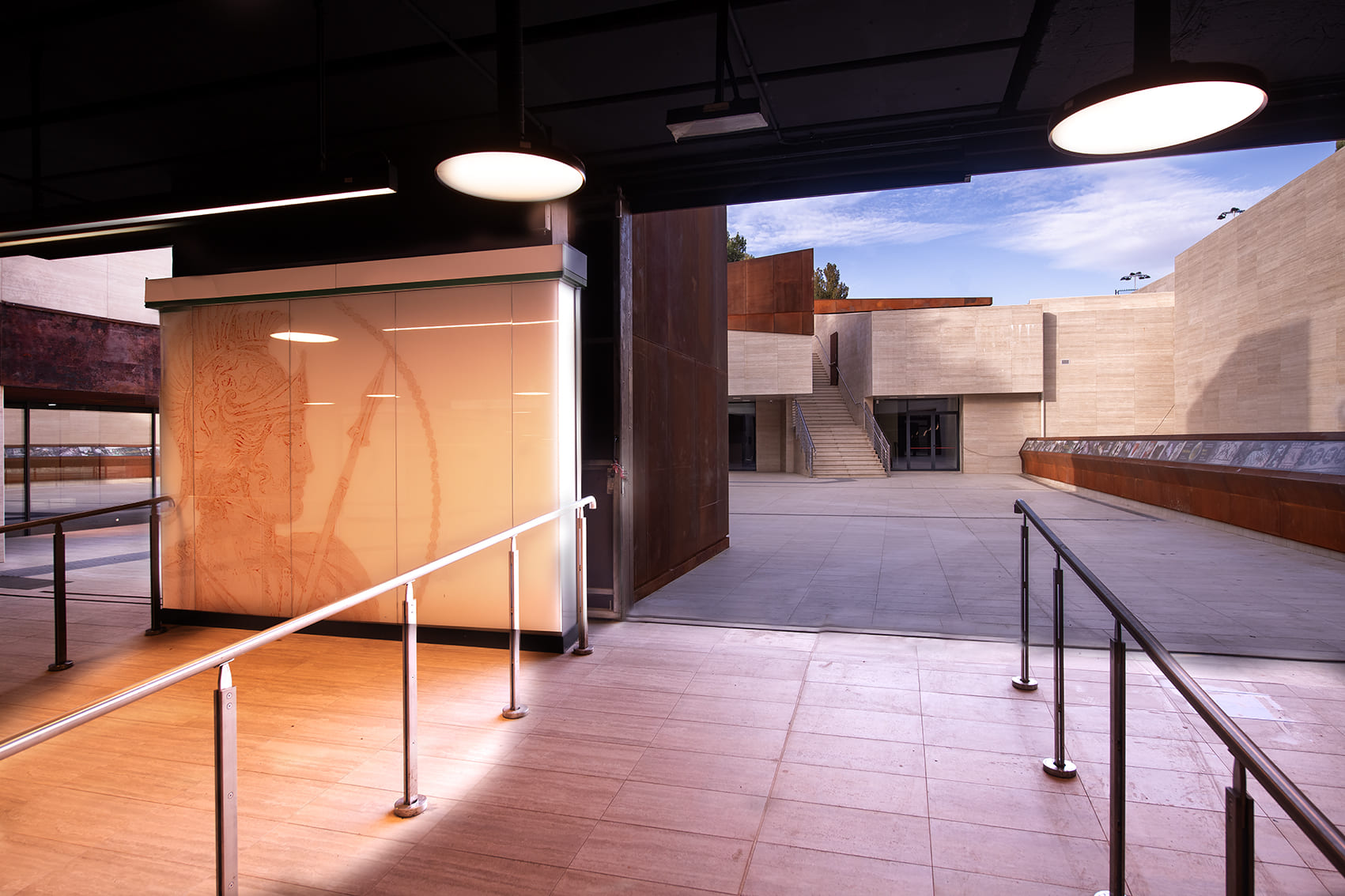 Tale elemento rappresenta il fulcro centrale della distribuzione del museo e della metropolitana. Uno spazio urbano ribassato in grado di realizzare un collegamento funzionale ma soprattutto un nuovo spazio della città. Oltre a dare accesso al nuovo museo ed alla metropolitana la piazza è attrezzata con un bar, anche integrato alla struttura museale e si configura come un nuovo spazio urbano aperto ai cittadini residenti ed agli utenti della metropolitana e del museo. L’allestimento museale già realizzato nella stazione San Giovanni, come il progetto per la valorizzazione in situ del complesso archeologico rinvenuto presso la stazione Porta Metronia, confermano ancora una volta quanto la realizzazione di grandi infrastrutture urbane come la Linea C rappresenti una formidabile opportunità di arricchimento delle conoscenze storico-archeologiche e di tutela e valorizzazione delle nuove scoperte.